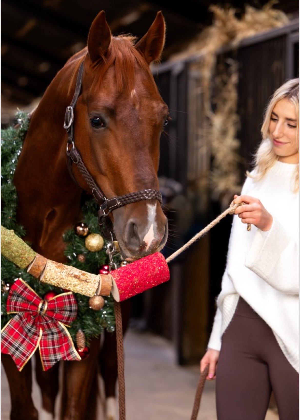 Une friandise à mâcher naturelle et aromathérapeutique qui apaise votre cheval, l’occupe et lui apporte une touche d’ambiance festive.