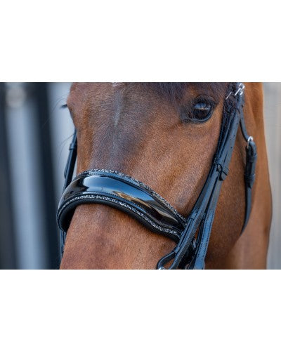 Cette bride a été spécialement conçu avec une têtière anatomique, douce et découpée en retrait. Cette têtière est façonnée de manière à réduire la pression derrière les oreilles et sur la tête.