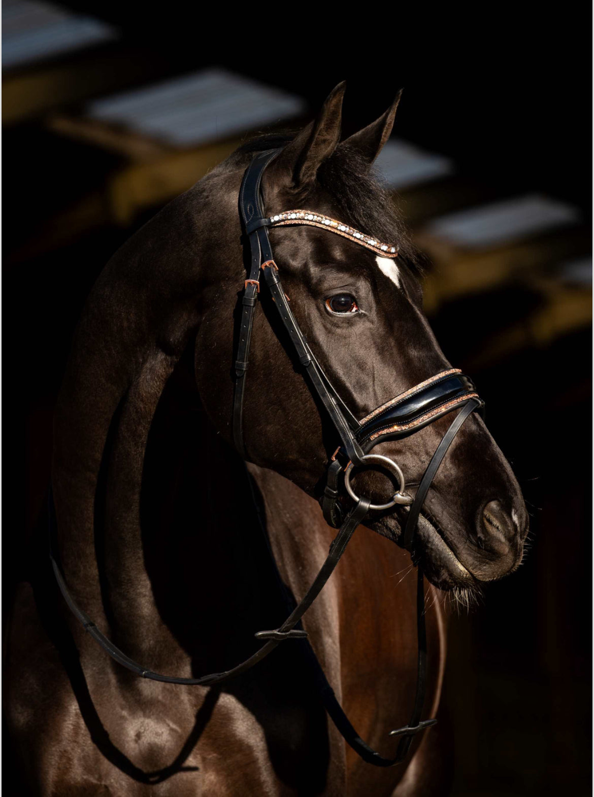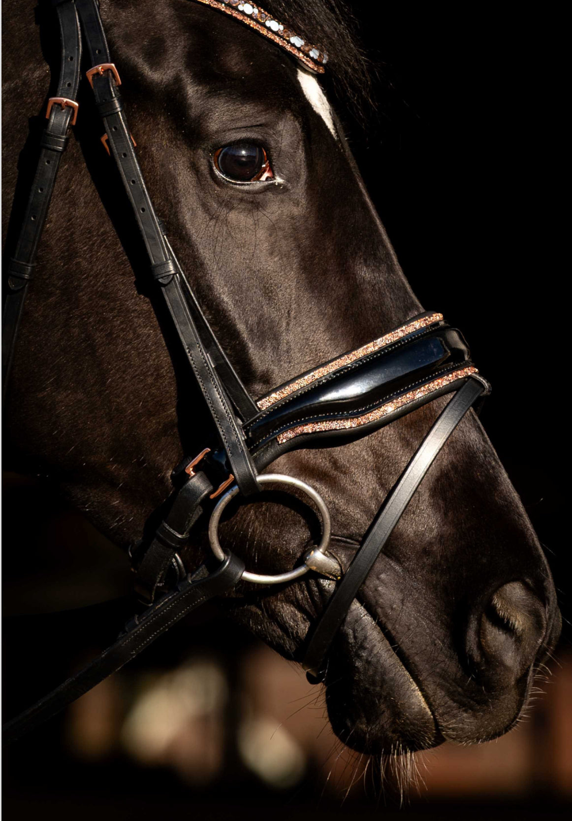 La muserolle est également décorée de larges paillettes décoratives « rocky » assorties au frontal.