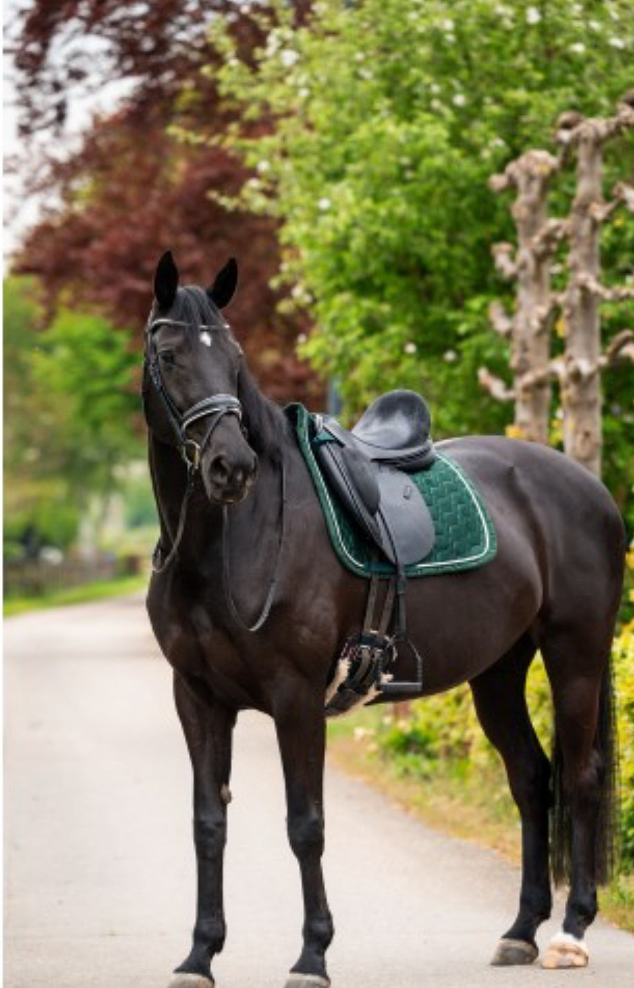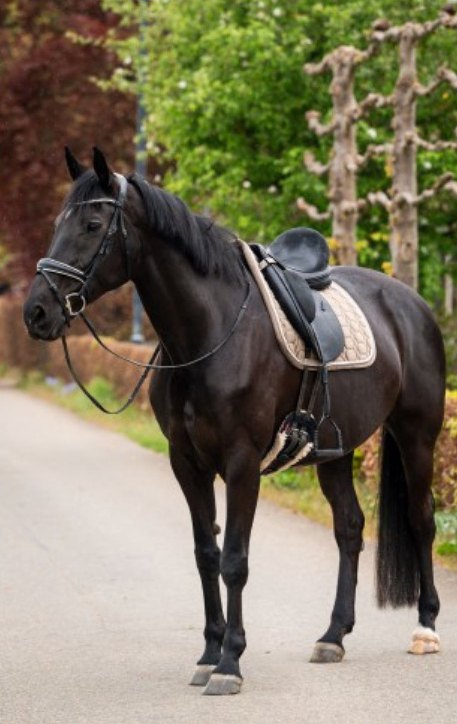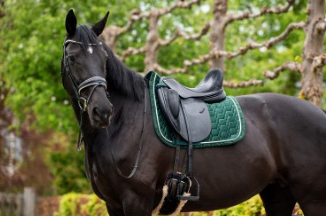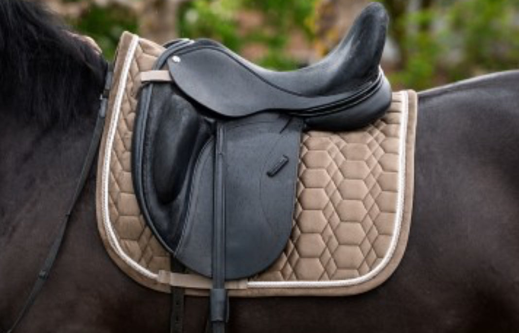 Le tapis de selle anatomique Velvet possède une belle coupe qui s’adapte parfaitement sous la selle.