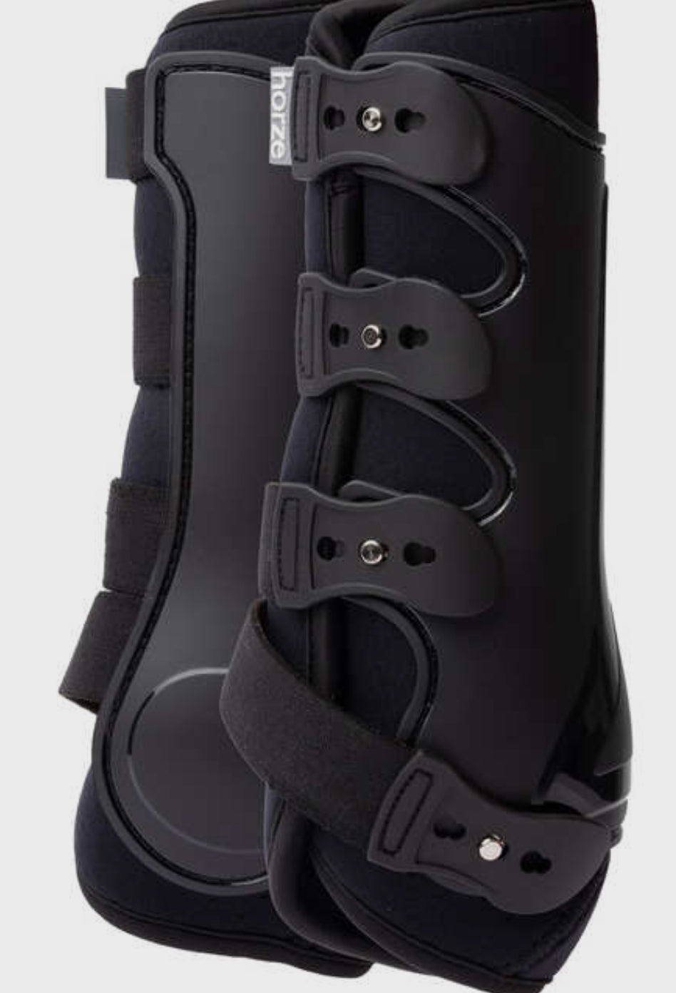 Ces guêtres combinent les fonctions de guêtres tendon et de guêtres de dressage pour offrir une protection polyvalente à votre cheval. Quatre sangles élastiques doubles avec fermeture par clip et goupille assurent un ajustement sécurisé et réglable. Le néoprène perforé et doublé épouse parfaitement la jambe du cheval, garantissant respirabilité et gestion de l'humidité. Le rembourrage doux et l'absorption des chocs assurent un confort et une protection optimaux. Faciles d’entretien et à séchage rapide, elles sont idéales pour un usage quotidien.