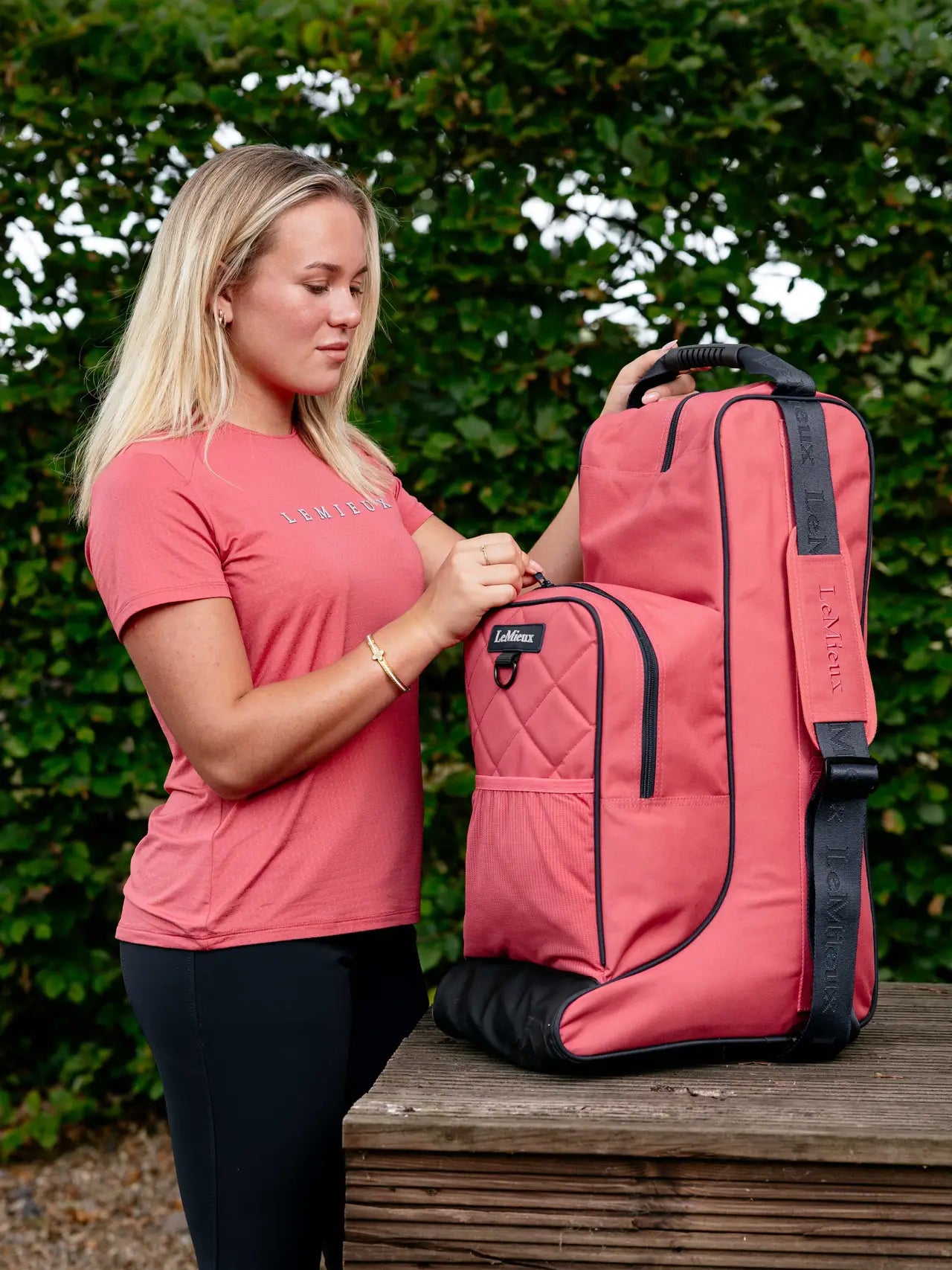 Il est doté d’un compartiment avant zippé prévu pour accueillir votre casque et autres accessoires d’équitation. Sa poignée assure une prise en main confortable et est spécialement conçue pour faciliter le transport de ce sac.