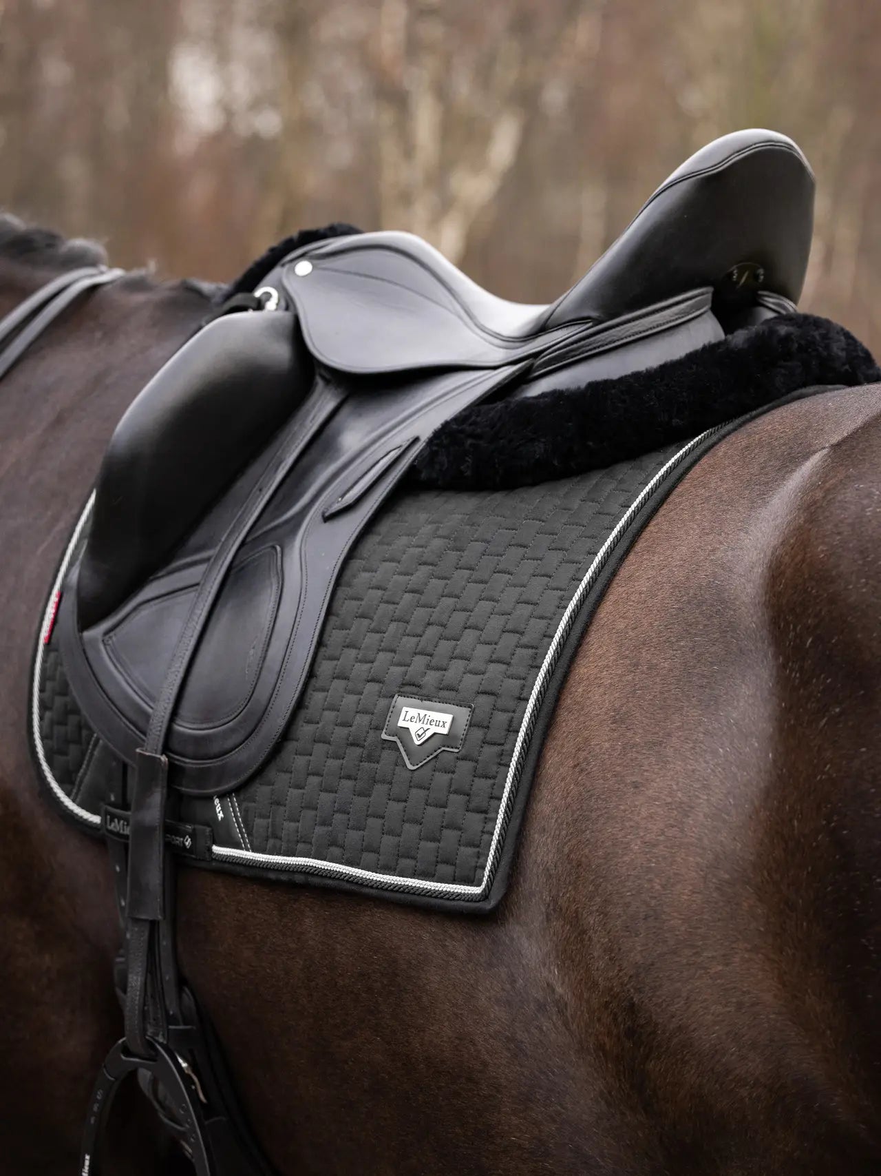 Avec son nouveau look sportif et son double cordon sophistiqué, le tapis Square Dressage Puissance en suédine offre le meilleur du confort et du style.