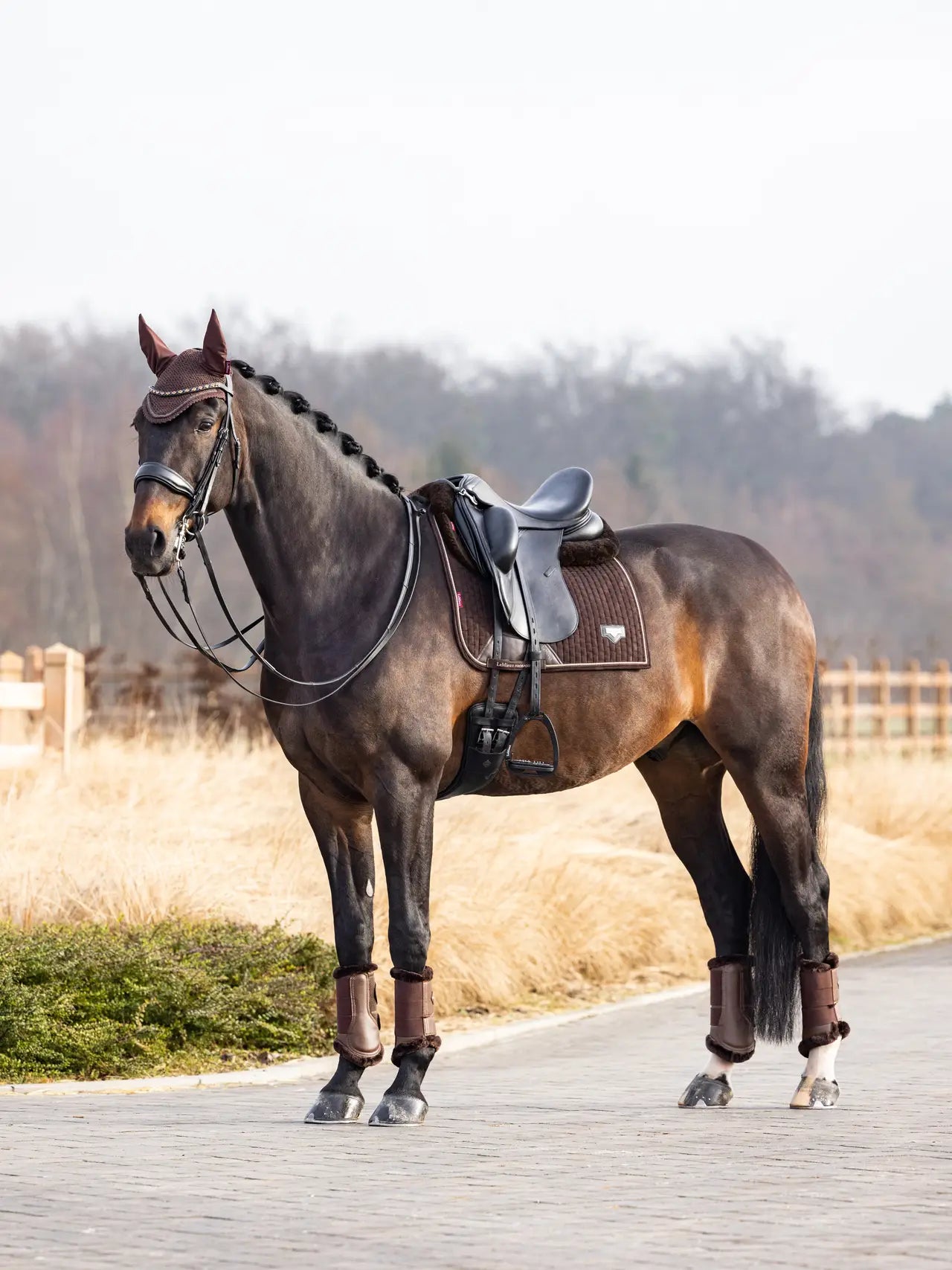 Avec son nouveau look sportif et son double cordon sophistiqué, le tapis Square Dressage Puissance en suédine offre le meilleur du confort et du style.