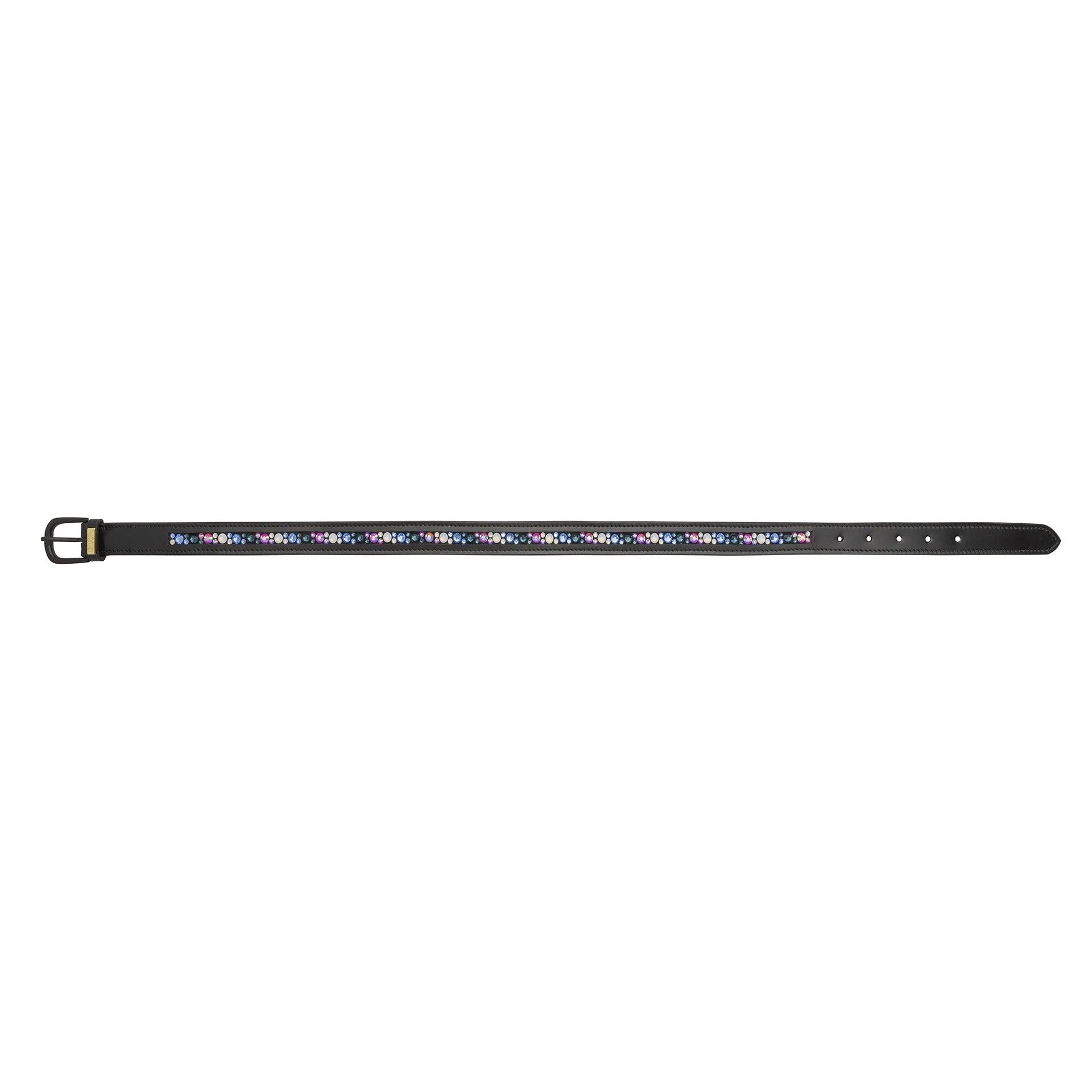 Élève ton style équestre avec cette ceinture chic en cuir véritable, conçue pour les jeunes cavaliers qui aiment une touche d’éclat. Habillée de pierres STELLUX™ noires et crystal, et décorée d’une plaque dorée gravée du logo Mini Ros, cette ceinture apporte juste ce qu’il faut de glamour à n’importe quelle tenue d’équitation.