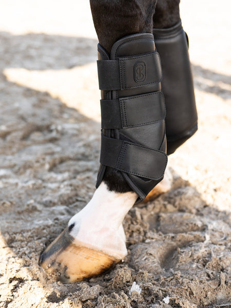 Guêtres en maille 3D flexible, fabriquées en cuir végan, conçues pour offrir une absorption optimale des chocs et une répartition homogène de la pression afin de protéger les jambes du cheval contre les impacts et les blessures. Leur conception hautement respirante aide à prévenir la surchauffe, maintenant les membres frais et confortables durant un entraînement intensif ou en compétition.