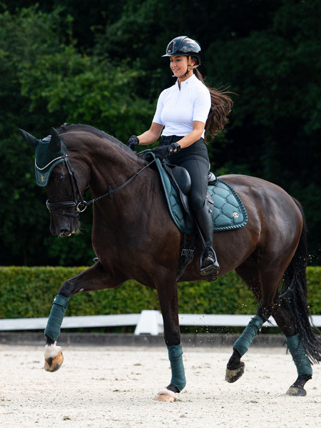 Tapis de selle de forme anatomique avec un liseré volanté et la citation emblématique de PS le long de la colonne vertébrale. Nos tapis de selle disposent d’un espace supplémentaire au niveau du garrot, ainsi que de nos coussinets antiglisse uniques qui maintiennent le tapis bien en place sous la selle. L’envers est en matière séchage rapide qui évacue l’humidité, et la surface extérieure est déperlante.
