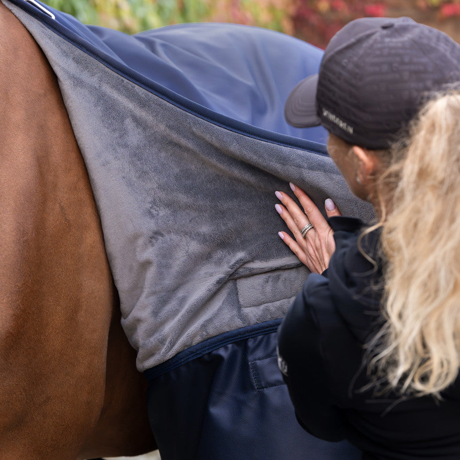 Choisir la bonne couverture pour les chevaux qui passent du temps au paddock est un défi pour de nombreux propriétaires. La météo peut changer plusieurs fois par jour - du soleil à une averse soudaine. De plus, au paddock, les chevaux sont très actifs : ils courent et jouent, ce qui augmente le risque de surchauffe pendant l’effort. Mais lorsque la température chute ou que le vent se lève, le corps du cheval peut rapidement se refroidir. Les couvertures d’extérieur standard à garnissage fixe ne suivent pas ces variations : elles ne réagissent ni aux fluctuations de température, ni aux changements d’intensité d’activité.